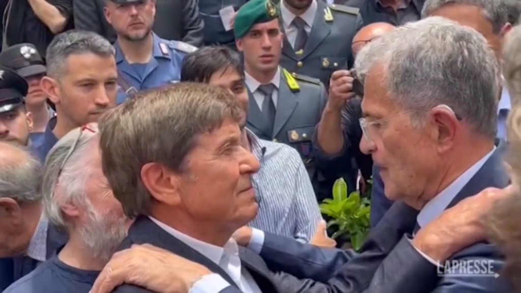 Anche Gianni Morandi ai funerali di Flavia Franzoni, moglie di Romano Prodi. L’artista ha abbracciato l’ex premier: era molto amato da Franzoni, che è morta durante un’escursione martedì 13 giugno.