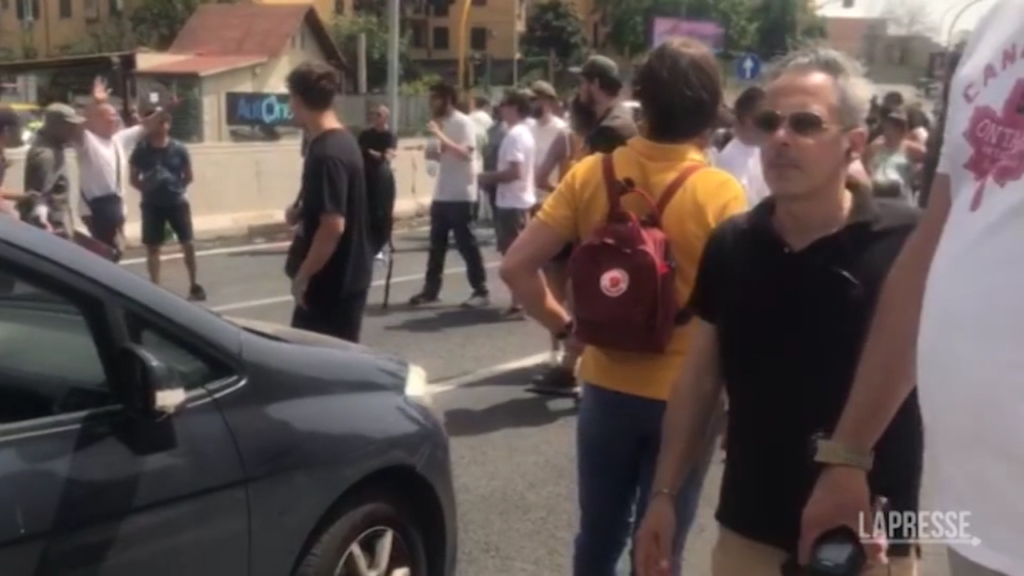 Manifestazione in solidarietà agli occupanti della ex scuola Sibilla Aleramo in via Tiburtina, a Roma. L’edificio è stato occupato questa mattina dagli attivisti di ‘Movimenti per la Casa’ che protestano contro gli sgomberi. Gli attivisti avevano invitato i cittadini ad unirsi a loro per l’assemblea pubblica del pomeriggio.