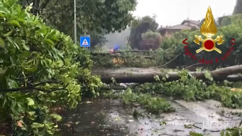 Un forte temporale con pioggia e vento si è abbattuto mercoledì mattina nel Comasco. Circa 60 al momento gli interventi dei vigili del fuoco in particolare tra Anzano e Alserio, la zona più colpita. Le squadre del comando di Como sono al lavoro per tagliare le piante cadute a causa del vento e che stanno bloccando diverse strade. Nelle immagini l’intervento a Montano. A Erba i vigili del fuoco sono al lavoro per soccorrere le persone rimaste nelle auto. I vigili del fuoco sono al lavoro a Gironico in via San Nazzario per tre escursionisti che sono rimasti sotto una pianta caduta per il maltempo. Le squadre Saf e del Soccorso Alpino hanno lavorato 40 minuti per estrarli: una sola persona è stata ricoverata in ospedale in codice giallo.