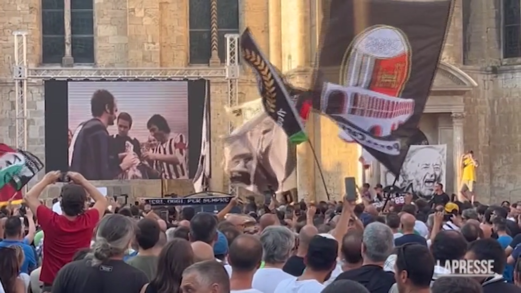 Una folla commossa davanti alla chiesa di Ascoli per l’utimo saluto a Carlo Mazzone, lo storico allenatore scomparso sabato scorso all’età di 86 anni. Sul maxischermo in piazza le immagini del tecnico, alcune delle sue interviste e i momenti più importanti della sua carriera. Bandiere e maglie dei tifosi della squadra bianconera, che Mazzone allenò dal 1968 al 1975 e successivamente dal 1980 al 1984. Un lungo applauso all’uscita del feretro dalla chiesa.