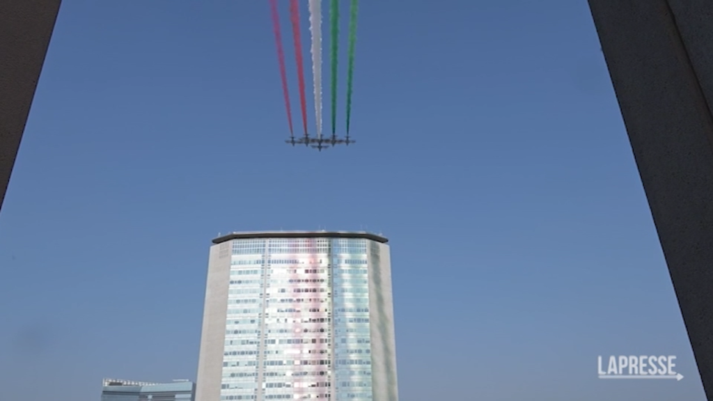 La pattuglia acrobatica dell’Aeronautica Militare ha sorvolato Milano disegnando il tricolore intorno ai Palazzi della Regione Lombardia. Alle 10.45 precise, come da programma, i nove “Aermacchi MB-339” della Pattuglia Acrobatica Nazionale dell’Aeronautica Militare hanno iniziato il loro sorvolo su Palazzo Pirelli e Palazzo Lombardia. L’air show delle Frecce Tricolori, della durata di una decina di minuti, è stato visibile da diverse zone di Milano: dal Duomo alla Stazione Centrale, da Porta Venezia a piazza della Repubblica, da Porta Nuova a Brera passando per Sempione. Il sorvolo delle Frecce Tricolori rientra tra gli eventi organizzati in collaborazione con il Consiglio regionale della Lombardia in occasione del Centenario dell’Aeronautica Militare.
