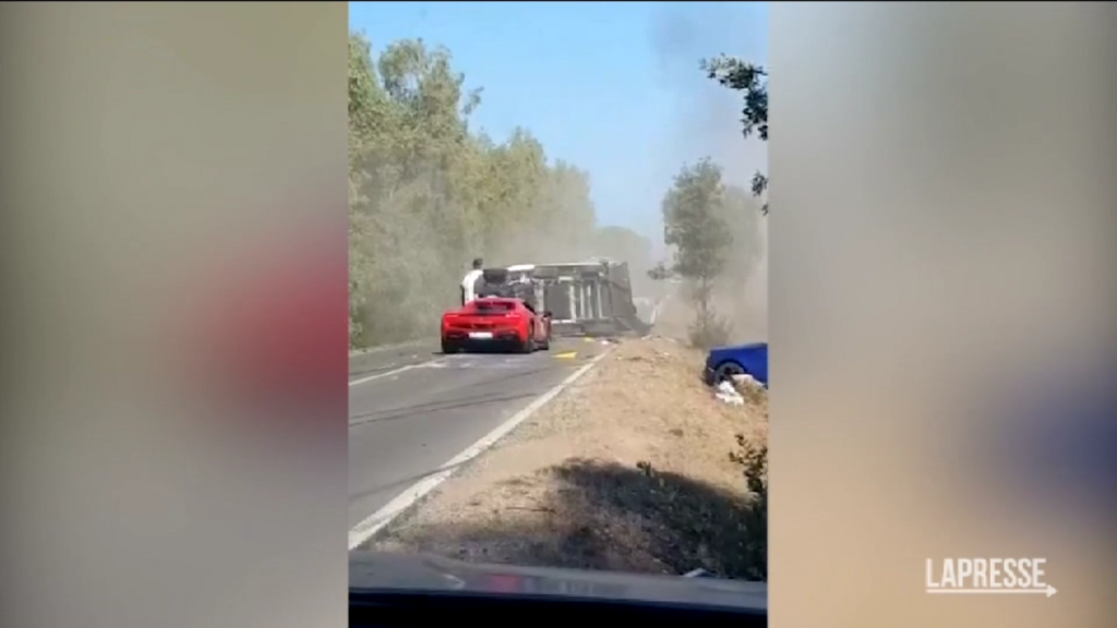 Incidente mortale a San Giovanni Suergiu, nel sud Sardegna. Le immagini, girate dalla dash cam di un’auto e poi acquisite dai Carabinieri, mostrano lo scontro tra una Ferrari e un camper avvenuto sulla statale 195 intorno alle 10.30 del 2 ottobre. Coinvolte anche una Lamborghini e un furgone. Il bilancio è di due vittime, rimaste carbonizzate a bordo della Ferrari: si tratterebbe di una coppia di svizzeri, marito e moglie, di 67 e 63 anni. La macchina, assieme ad altre vetture di lusso, era partita dal Forte Village ed era diretta verso Porto Flavia. Era stata noleggiata per partecipare alla manifestazione Sardinia Supercar Experience.