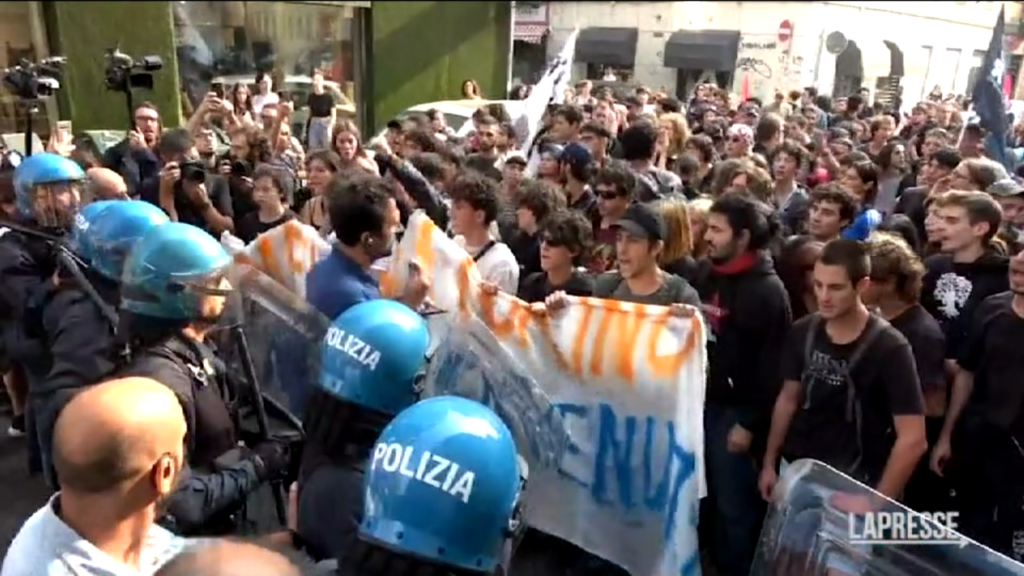 Cariche della polizia a Torino dove centinaia di persone, per lo più studenti, stanno manifestando per contestare la partecipazione del presidente del Consiglio, Giorgia Meloni a Festival delle Regioni. Uno striscione recita “Meloni a Torino non sei la benvenuta” mentre molti ragazzi mostrano cartelli con la scritta “Soldi allo studio e non alla guerra” e “La vostra repressione non fermerà noi studenti”.