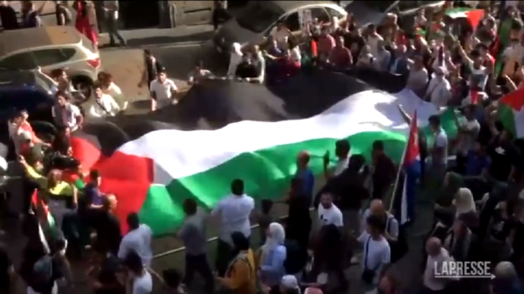 Migliaia di persone sono scese in strada a Milano per mostrare solidarietà al popolo palestinese, colpito dalla guerra scoppiata il 7 ottobre scorso tra Hamas e Israele. Il lungo corteo si è snodato per le vie del centro città, vigilato a distanza da agenti in tenuta antisommossa. I manifestanti hanno sventolato bandiere palestinesi ed esposto cartelli e striscioni con la scritta: “Fermiamo il genocidio a Gaza, salviamo Gaza”.
