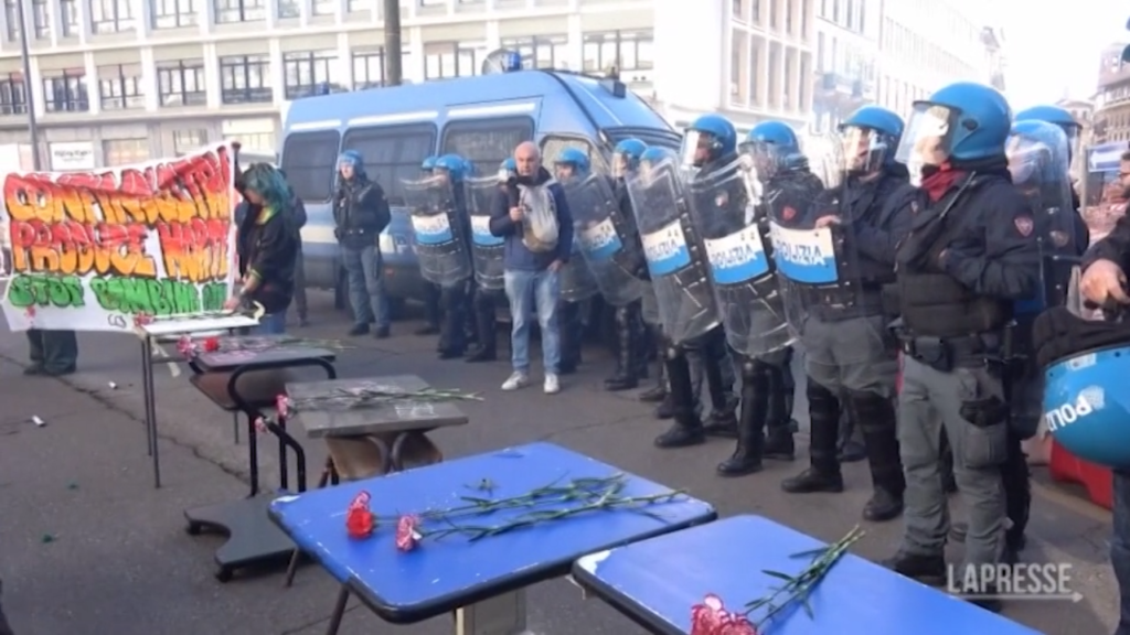 Un migliaio di studenti delle scuole superiori sono scesi in piazza a Milano per chiedere che vengano investiti meno soldi nei conflitti e più per la scuola. La manifestazione, partita da largo Cairoli, ha percorso il centro della città fino a piazza Missori. Durante il tragitto, davanti alla sede di Confindustria Assolombarda, sono stati lasciati dei banchi scolastici su cui erano poggiati fiori insanguinati. “Confindustria è il sindacato degli industriali e di chi fa profitto in Italia. L’Italia è gravemente responsabile del genocidio palestinese”, spiega Lorenzo. “A Gaza l’anno scolastico è finito non perché gli studenti hanno fatto la maturità ma perché sono crollate delle bombe in testa a ragazzi della nostra età”.