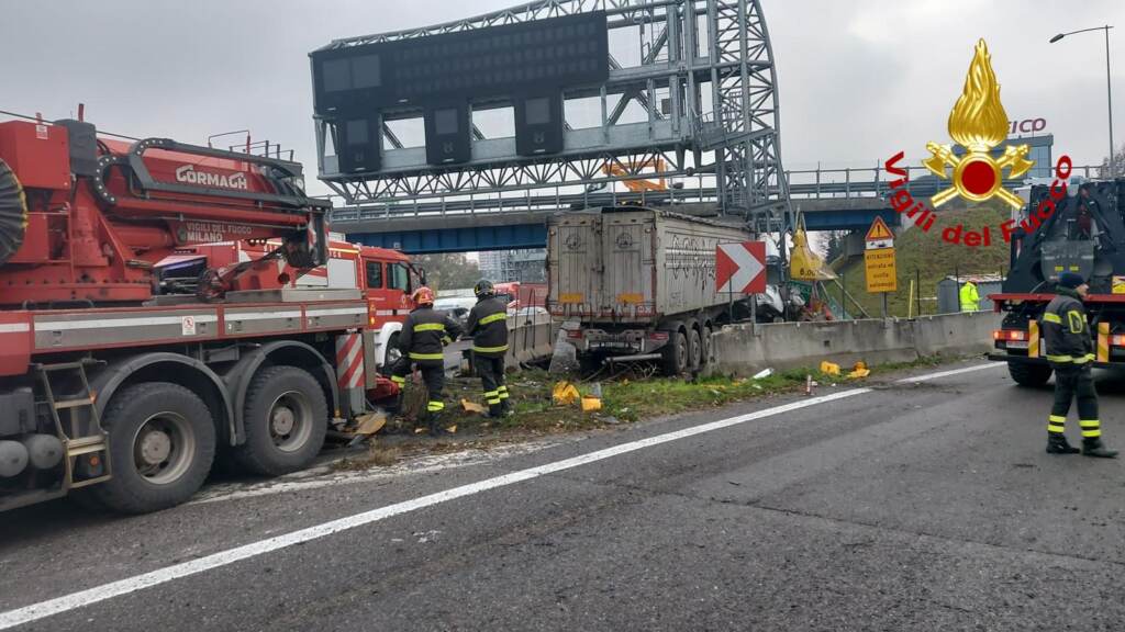 I vigili del fuoco di Milano sono impegnati dalle 6 di stamattina per un incidente mortale avvenuto all’uscita dello svincolo Sesto San Giovanni- Cinisello sulla A4 direzione Torino. Vittima un camionista che si trovava a bordo di un Tir. Dopo aver improvvisamente perso il controllo, l’autoarticolato si è schiantato su un pilone di cemento che sorregge i pannelli luminosi. Poco prima dell’impatto, il Tir ha speronato un furgone il cui conducente è rimasto ferito, ma le condizioni non sembrano gravi. Difficile il recupero del corpo dell’autista da parte dei Vigili del fuoco di Sesto San Giovanni rimasto letteralmente schiacciato all’interno della cabina. Sul posto Polstrada e 118.