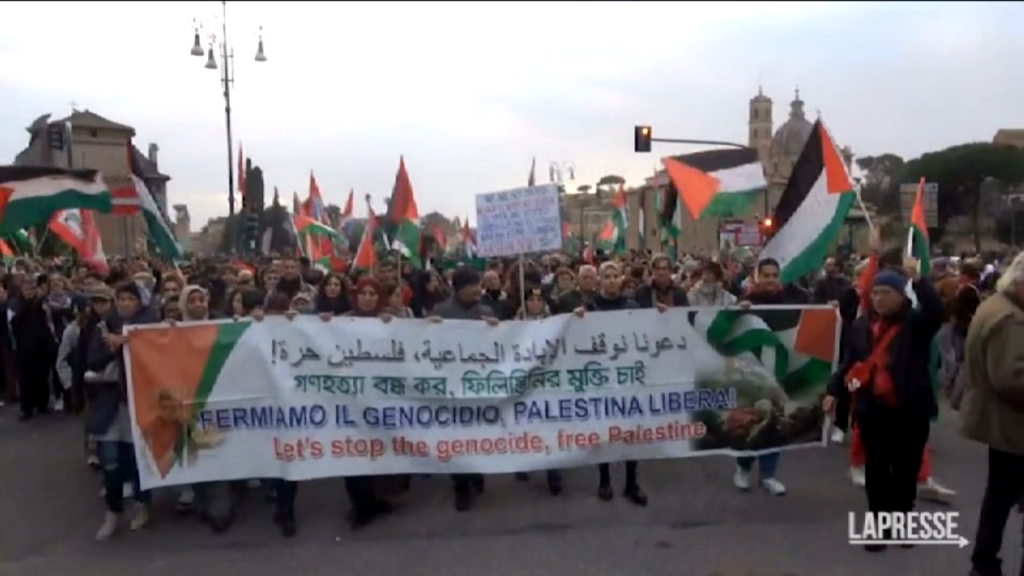 La comunità palestinese romana, insieme al movimento studenti palestinesi e a molte sigle della sinistra extraparlamentare nazionale, ha organizzato una manifestazione in favore del popolo palestinese a Roma. Al corteo presente anche Khaled El Qaisi, il ricercatore italo-palestinese arrestato lo 31 agosto in Israele che ha fatto ritorno a Roma solo lo scorso 9 dicembre. Riunitesi in Via dei Fori imperiali, circa 300 persone si sono poi dirette lungo via Cavour fino a raggiungere piazza dell’Esquilino, in una manifestazione ricca di bandiere, canti, flash-mob e interventi in favore della causa palestinese. Il corteo ha completato il suo percorso in maniera del tutto pacifica.