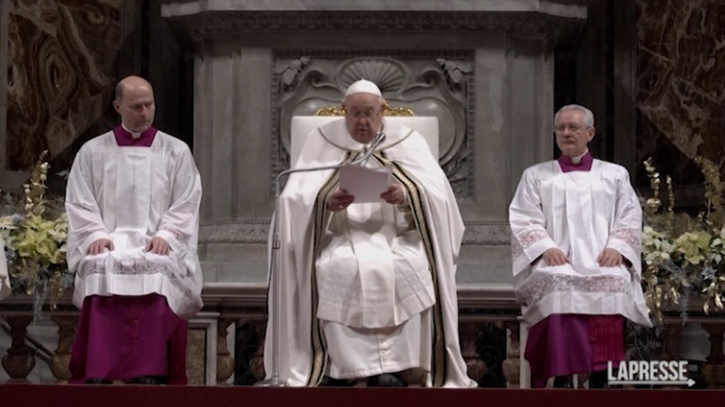 “Il nostro cuore stasera è a Betlemme, dove ancora il Principe della pace viene rifiutato dalla logica perdente della guerra, con il ruggire delle armi che anche oggi gli impedisce di trovare alloggio nel mondo”. Lo ha detto Papa Francesco, nella sua omelia per la Messa della Notte di Natale in corso nella Basilica di San Pietro in Vaticano. “‘Il censimento di tutta la terra’. È questo – ha esordito il Pontefice – il contesto nel quale Gesù nasce e su cui il Vangelo si sofferma. Poteva accennarne rapidamente, invece ne parla con accuratezza. E con ciò fa emergere un grande contrasto: mentre l’imperatore conta gli abitanti del mondo, Dio vi entra quasi di nascosto; mentre chi comanda cerca di assurgere tra i grandi della storia, il Re della storia sceglie la via della piccolezza. Nessuno dei potenti si accorge di Lui, solo alcuni pastori, relegati ai margini della vita sociale. Ma il censimento dice di più. Nella Bibbia non lasciava un bel ricordo. Il re Davide, cedendo alla tentazione dei grandi numeri e ad una malsana pretesa di autosufficienza, aveva commesso un grave peccato proprio facendo il censimento del popolo. Voleva saperne la forza e dopo circa nove mesi ebbe il numero di quanti potevano maneggiare la spada. Il Signore si sdegnò e una disgrazia colpì il popolo. In questa notte, invece, il ‘Figlio di Davide’, Gesù, dopo nove mesi nel grembo di Maria, nasce a Betlemme, la città di Davide, e non punisce il censimento, ma si lascia umilmente conteggiare. Uno fra i tanti. Non vediamo un dio adirato che castiga, ma il Dio misericordioso che si incarna, che entra debole nel mondo, preceduto dall’annuncio: ‘sulla terra pace agli uomini’”.