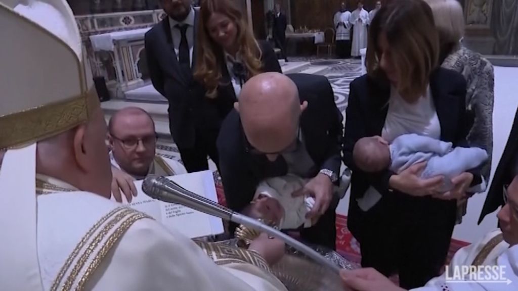 Noi stiamo qui per battezzare, per dare proprio il dono della fede ai nostri bimbi e loro sono i protagonisti in questa cerimonia. Loro possono parlare, andare. Loro comandano perché è la festa loro e riceveranno il dono più bello, il dono della fede, il dono del Signore”. Lo ha detto Papa Francesco nel corso dell’omelia durante la messa nella Cappella Sistina dove stanno ricevendo il battesimo 16 bambini. “Se piangono lasciateli piangere, se hanno fame allattateli, tranquilli qui. Se hanno caldo, togliere le vesti che alle volte il caldo fa male”, ha aggiunto il Papa sottolineando che “loro sono i protagonisti perché oggi ci daranno anche a noi la testimonianza di come si riceve la fede, con innocenza, con apertura di cuore”. “A voi genitori e padrini auguro che la vostra vita sia di aiuto per questi bambini, per la crescita, accompagnarli nella crescita perché questo è un modo di aiutare anche la fede che cresca in loro. Grazie tante per la vostra testimonianza e per averli portarti qui a riceve la fede”, ha concluso Papa Francesco.