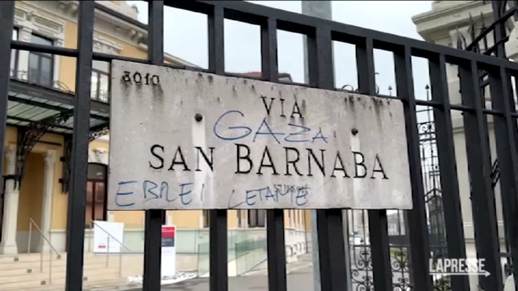 “Via Gaza, ebrei letame“. La scritta antisemita vergata in blu è comparsa sull’insegna in marmo indicante via San Barnaba a Milano, a poche decine di metri dal tempio ebraico di via della Guastalla.