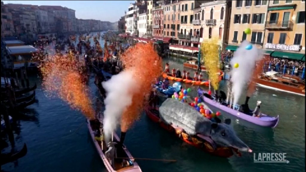 Migliaia di persone alla sfilata di Carnevale lungo il Canal Grande a Venezia: decine di imbarcazioni con equipaggi vestiti con costumi elaborati hanno incantato gli spettatori. La “Pantegana”, un’imbarcazione a forma di topo gigante, ha guidato l’annuale sfilata sull’acqua. Nuvole colorate di coriandoli e palloncini hanno segnato l’apertura ufficiale del Carnevale nella città lagunare che durerà fino al 13 febbraio. “C’è tanta gioia in giro, la gente vuole divertirsi e soprattutto rispettare la città”, ha dichiarato il sindaco di Venezia Luigi Brugnaro all’Associated Press.