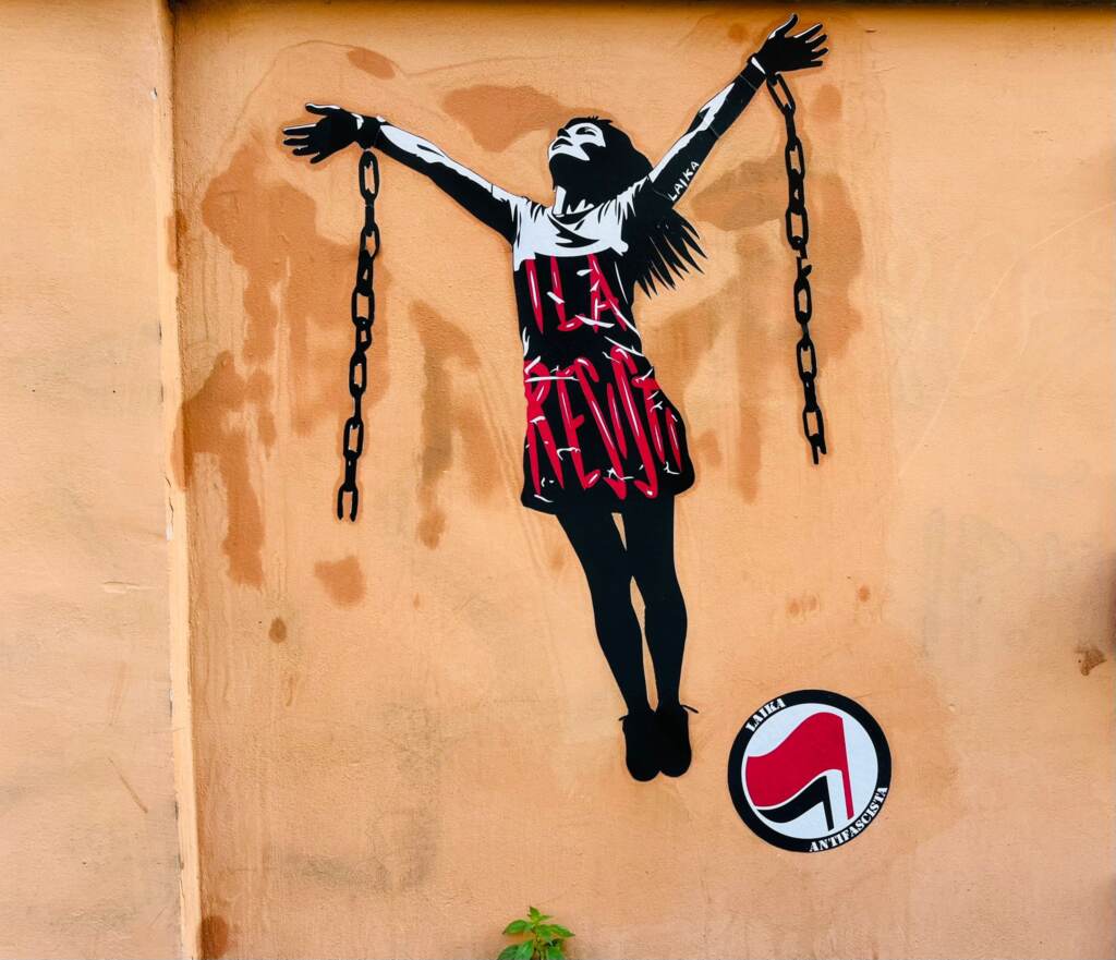 Un poster che ritrae Ilaria Salis mentre spezza le catene e, sul vestito, la scritta “Ila resisti”. È la nuova opera della street artist Laika comparsa nella notte a Roma tra via dei Villini e via Malpighi, a pochi passi dall’Ambasciata di Ungheria. “La Salis è detenuta in Ungheria da 11 mesi in condizioni disumane – dichiara l’artista – le immagini che abbiamo visto dell’aula di tribunale sembrano arrivare da Teheran, non da un paese dell’Unione Europea. Neanche Breivik in Norvegia, il terrorista della strage di Utoya che fece il saluto nazista in aula, era legato così. Questa è una violazione dei diritti umani da parte di uno Stato membro e non si può rimanere in silenzio, senza far nulla. È una dimostrazione di forza di uno stato che tende sempre di più all’autoritarismo e che cancella i diritti. Sono fiera di sostenere Ilaria, da artivista e da antifascista. Questa onda nera che si abbatte sull’Europa va fermata. Ilaria va liberata. Subito“, conclude Laika.