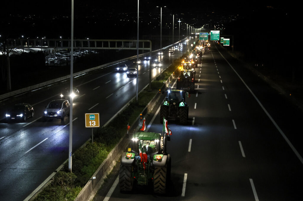 Circa 200 trattori di ‘Riscatto agricolo’ in corteo sul Grande raccordo anulare di Roma nella notte tra venerdì e sabato. I mezzi, scortati dalle forze dell’ordine, sono partiti dal presidio di Via Nomentana dove sono rientrati dopo la sfilata.