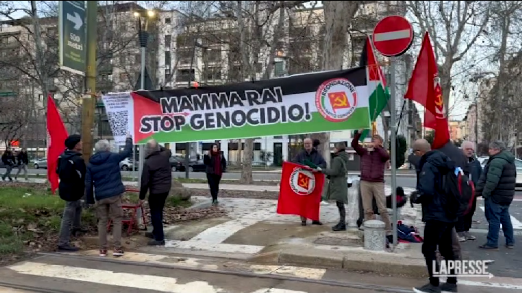 Diverse centinaia di attivisti pro Palestina sono scese sotto la sede della Rai in corso Sempione, a Milano, per protestare contro il racconto della crisi israelo-palestinese innescato dalle parole del cantante Ghali dal palco di Sanremo. “Alla Rai il calendario si è fermato al 7 ottobre, è una vergogna”, dice un ragazzo palestinese, che aggiunge “Alla Rai non parlano di 11mila ostaggi palestinesi nelle carceri israeliane, non parlano dei 30mila morti”. I manifestanti dopo aver rovesciato vernice rossa su un cumulo di macerie sono partiti in corteo diretti verso l’Arco della Pace.