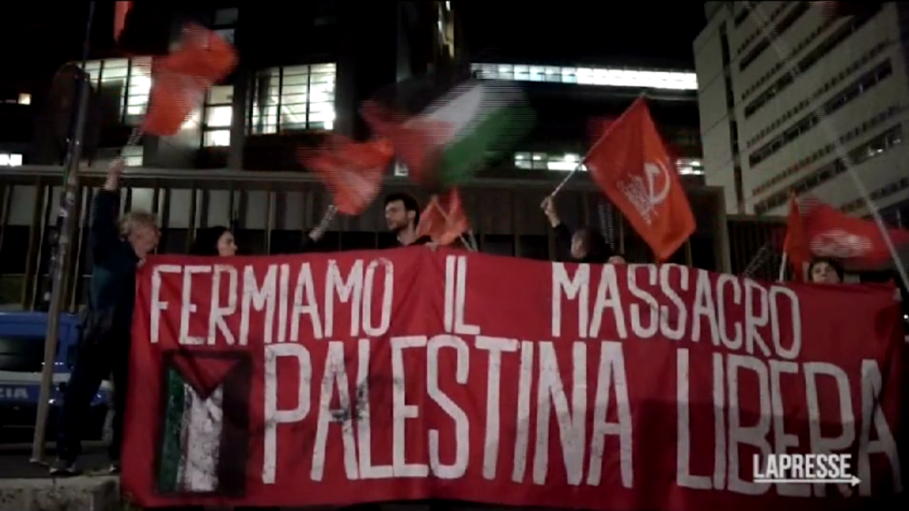 Sono un centinaio le persone radunate, da alcuni collettivi di area comunista, davanti alla sede del gruppo Gedi – di cui fa parte il quotidiano la Repubblica – in via Cristoforo Colombo, a Roma. I manifestanti sono scesi in strada per criticare la gestione da parte del giornale del caso Ghali al Festival di Sanremo, il punto di vista delle testata sulla situazione in Medioriente e in solidarietà con i cronisti di Gaza uccisi nei raid dell’esercito israeliano nella Striscia.