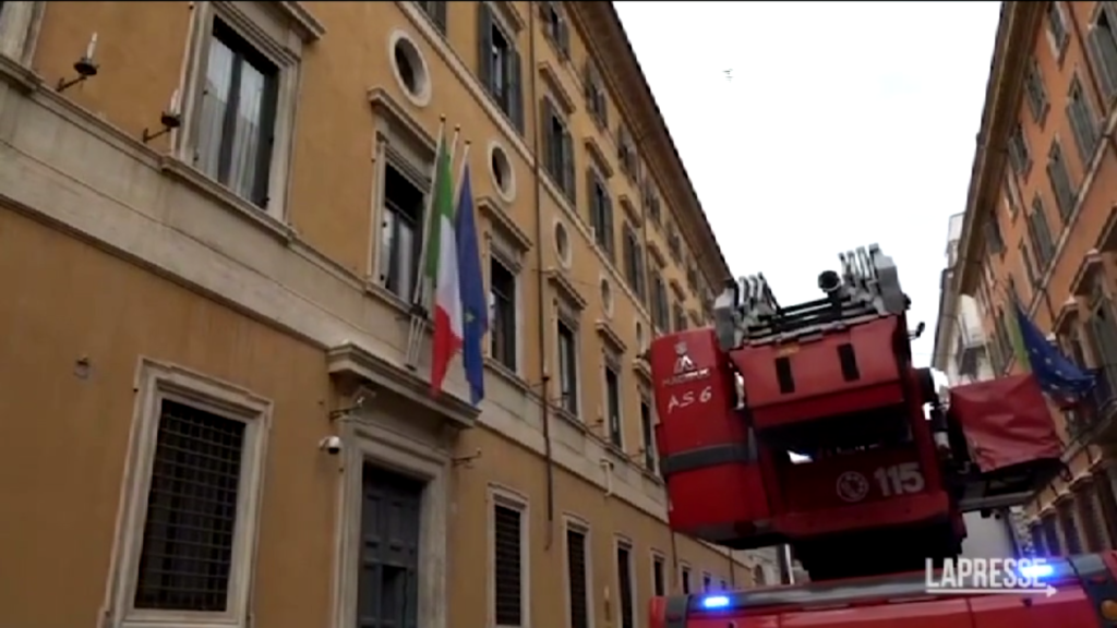 Intervento dei vigili del fuoco a palazzo Madama, sede del Senato in via della Dogana Vecchia a Roma. Secondo quanto si apprende sarebbero caduti dei piccoli calcinacci dal tetto. Nessuno è rimasto ferito. I vigili sono al lavoro per verificare se ci dovessero essere altre parti pericolanti.