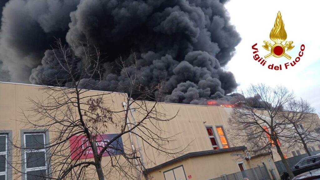Nove squadre dei vigili del fuoco sono impegnate a Truccazzano, nella provincia di Milano, per un incendio che ha colpito un’azienda della zona. In supporto alle squadre di Milano sono presenti vigili del fuoco anche di Monza e Bergamo. Dalle prime immagini si vede una densa colonna di fumo nero alzarsi dal magazzino.