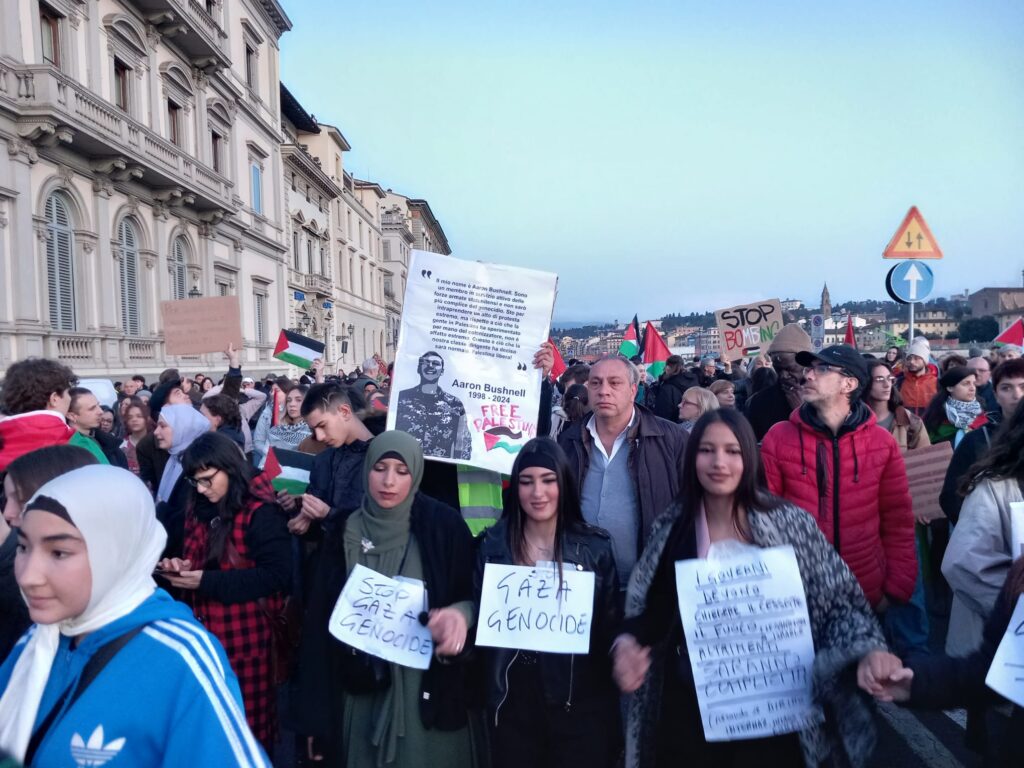 In testa al corteo, che ha preso il via poco prima delle 15 sotto la pioggia, uno striscione con su scritto ‘Pisa in piazza contro bombe e manganelli’ e “Pisa non ha paura. Stop al genocidio. Studenti pro Palestina” oltre a bandiere palestinesi e della pace. Ingente lo schieramento di forza dell’ordine per una manifestazione che da piazza Vittorio Emanuele, attraverso Corso Italia, è arrivata fino alla Prefettura per poi tornare in piazza Cavalieri, teatro degli scontri della scorsa settimana.