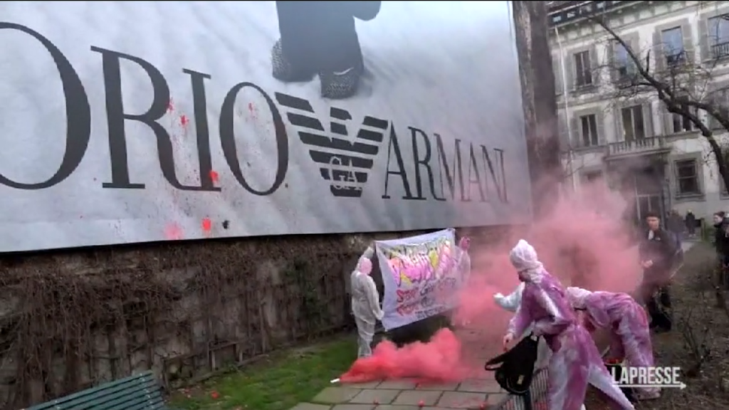 Alcuni manifestanti, in tuta bianca, si sono staccati dal corteo per l’8 marzo a Milano, e hanno lanciato uova contenenti vernice rossa contro un cartellone pubblicitario di Armani tra via Broletto e via dell’Orso. I manifestanti hanno esposto anche uno striscione con scritto: “Boicot Tour – Stop Genocide Free Palestine“.