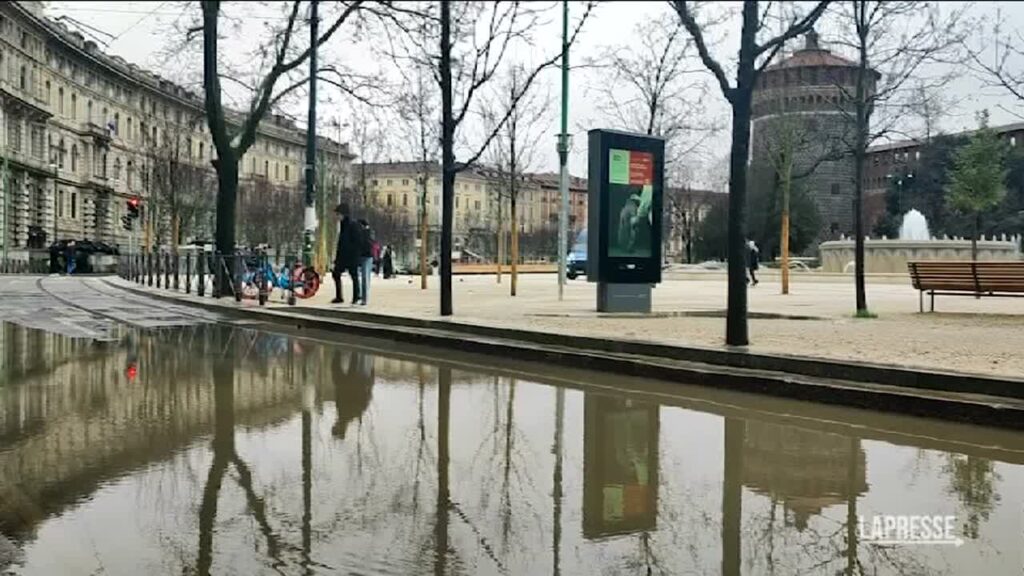 Il maltempo colpisce ancora una volta Milano. Una forte ondata di pioggia si è abbattuta sul capoluogo lombardo allagando le strade e causando disagi alla viabilità. Le immagini mostrano la situazione nella zona del Castello Sforzesco, in pieno centro cittadino. Per tutta la giornata di domenica 10 marzo il Comune, su indicazione del Centro Monitoraggio Rischi Naturali della Regione Lombardia, ha diramato un’allerta gialla per rischio idrogeologico ordinario.