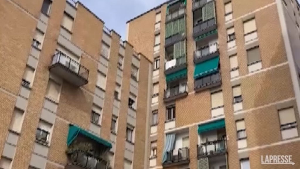 Nelle immagini, forze dell’ordine e soccorsi all’esterno dell’appartamento, bruciato nel rogo. A terra parti delle tapparelle.
