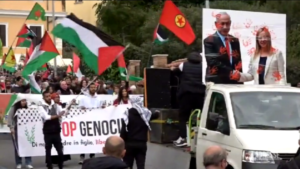Circa duemila le persone scese in piazza a Roma a sostegno della Palestina. Il corteo organizzato dalla Comunità dei palestinesi in Italia, Cambiare Rotta, Potere al Popolo e altre sigle di sinistra è partito a metà pomeriggio da Piazzale Ugo la Malfa in direzione Viale Trastevere. Tanti i cartelli, i cori e gli striscioni contro Israele, Nato e governo Meloni.