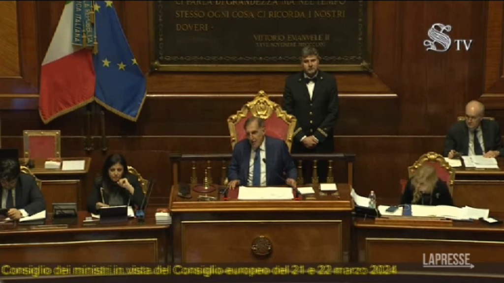 “Mi corre l’obbligo di segnalare un gesto non proprio elegante, per essere molto light, avvenuto mentre salutavo gli studenti di una scuola di Roma. C’è stato da parte di uno degli studenti un gesto con due dita e il pollice alzato, puntati verso il presidente del Consiglio, immediatamente represso da una delle insegnanti, che mi piace segnalare per condannarlo nella maniera più decisa, anche se si tratta di un ragazzino”. È stato il presidente del Senato Ignazio La Russa a riferirlo, riaprendo l’Aula per il dibattito sulle comunicazioni della premier Giorgia Meloni sul Consiglio europeo.