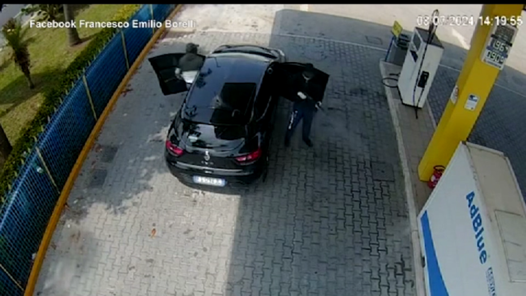 Raid armato in un distributore di carburanti di Caivano, in provincia di Napoli. Nelle immagini delle telecamere di sicurezza diffuse dal deputato di Avs Francesco Emilio Borrelli, si vede un’auto con due persone a bordo entrare nell’area di servizio. Scende l’uomo dal lato passeggero con un fucile e spara prima verso le colonnine poi verso le auto in sosta. Poi anche l’altro uomo alla guida della vettura esce con una pistola in mano. Entrambi erano a volto coperto e con berretti scuri. I carabinieri indagano per ricostruire la dinamica della vicenda avvenuta ieri, lunedì 8 luglio.