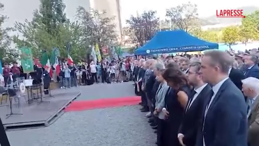 Alle 11:36 in punto Genova si ferma ancora una volta: un minuto di silenzio per ricordare le 43 vittime del crollo del ponte Morandi, il 14 agosto del 2018. Alla Radura della Memoria, dove è in corso la commemorazione con autorità locali e familiari delle vittime, è stato osservato un minuto di silenzio e di raccoglimento proprio sotto le campate del nuovo ponte San Giorgio. Ad accompagnare il silenzio, le sirene delle navi in porto e le campane di tutta la diocesi genovese che hanno suonato insieme all’unisono. Presenti alla commemorazione, il sindaco di Genova Marco Bucci, il governatore ad interim Alessandro Piana, il viceministro delle infrastrutture e dei trasporti Edoardo Rixi ed Egle Possetti, presidente del Comitato ricordo vittime Ponte Morandi.