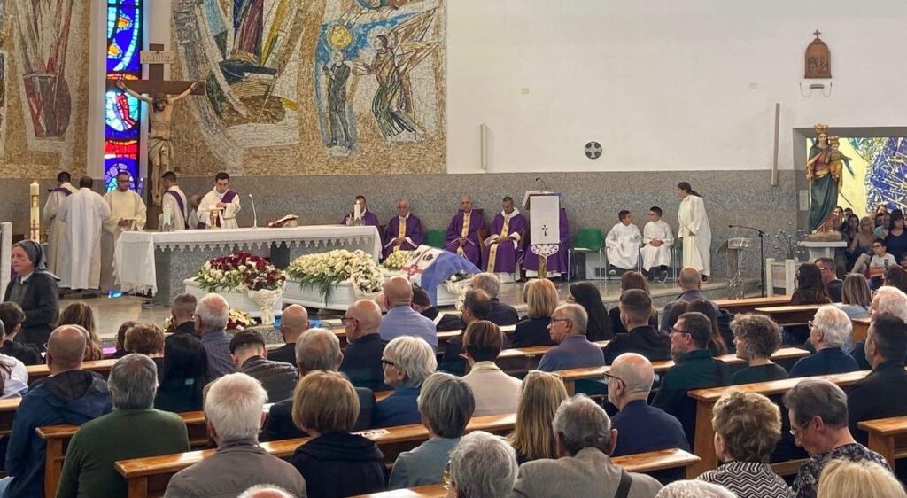 Lacrime e tanta commozione ai funerali della 43enne e dei suoi figli, mentre il terzo, 14 anni, è sopravvissuto alla follia omicida del padre. In prima fila, i compagni della 5° B di Francesco, tanta gente è arrivata prima per poter entrare nella chiesa gremita, tantissimi sono rimasti fuori.