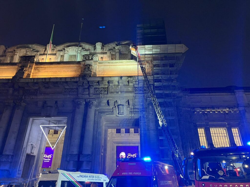 Milano, uomo si arrampica sulla facciata della Stazione Centrale: sul posto i vigili del fuoco