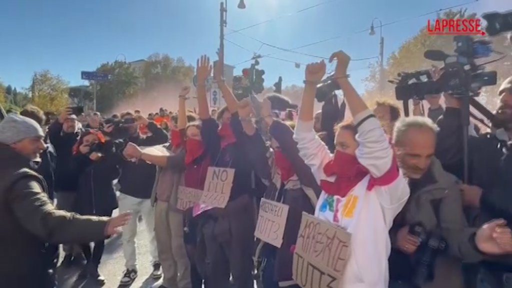 A Roma la manifestazione in occasione dello sciopero nazionale degli studenti indetto dal sindacato Uds. Durante il corteo ‘No Meloni Day’ un gruppo di manifestanti si è ammanettato e imbavagliato all’altezza del ponte Sublicio, a Porta Portese e, dopo aver lanciato alcuni palloncini carichi di vernice rossa e delle manette, si è avvicinato a ridosso delle forze dell’ordine che scortano il corteo per protestare contro il DL sicurezza 1660.