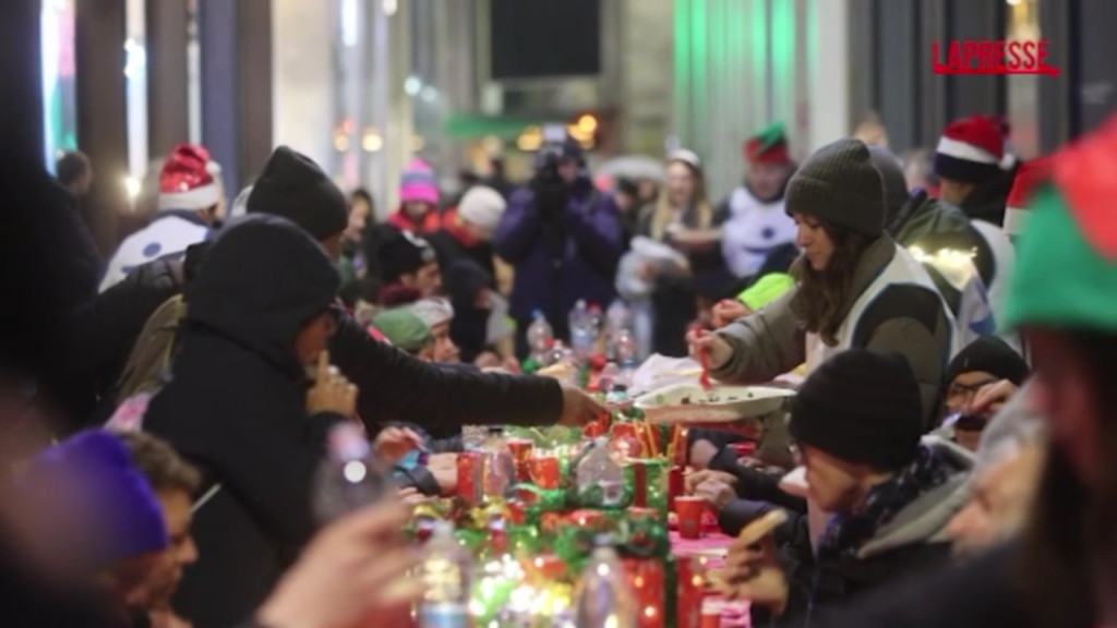 Nel cuore di Milano, più precisamente sotto i portici di corso Europa, è stata imbandita una lunga tavolata dedicata alle persone senza dimora. I volontari di Progetto Arca hanno servito un menù completo, grazie alla presenza della Cucina mobile, composto da antipasto, primo, secondo e l’immancabile panettone, per circa 100 ospiti. Durante la serata c’è stata anche la distribuzione dei regali di Natale: zaini, borracce, berretti di lana e torce frontali, strumenti indispensabili per chi vive in strada. L’evento è stato reso ancora più magico dai canti natalizi del coro di San Giovanni Battista in Trenno.