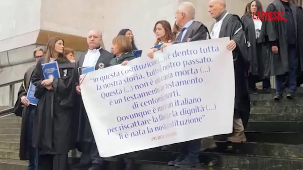(LaPresse) Circa 60 magistrati stanno protestando sulle scalinate del Palazzo di Giustizia di corso di Porta Vittoria, a Milano, in occasione dell’inaugurazione dell’anno giudiziario indossando toghe e coccarde, esponendo cartelli e distribuendo copie della Costituzione. Hanno risposto all’appello dell’Associazione nazionale magistrati – sezione di Milano e del Comitato direttivo centrale dell’Anm per mandare un segnale di “contrarietà” alle riforme costituzionali in corso di approvazione da parte di Governo e maggioranza. Il gesto dimostrativo non sta comunque recando alcun intralcio ai partecipanti all’inaugurazione dell’anno giudiziario – fra cui politici e vertici delle forze dell’ordine – che si terrà in mattinata nell’aula magna del tribunale.