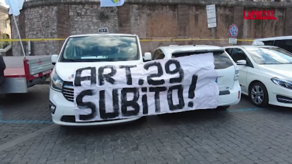 Sit-in protesta dei tassisti contro gli Ncc a Roma. “Chiediamo all’assessore Patané e alla giunta comunale, ma a lui in particolare, l’applicazione dell’articolo 29 che riguarda l’accesso alla Ztl degli Ncc (Noleggio con conducente) che non hanno rimessa nel Comune”, dice Sergio Mastrucci di Confintesa Taxi Roma che ha organizzato la protesta in piazza Bocca della Verità.