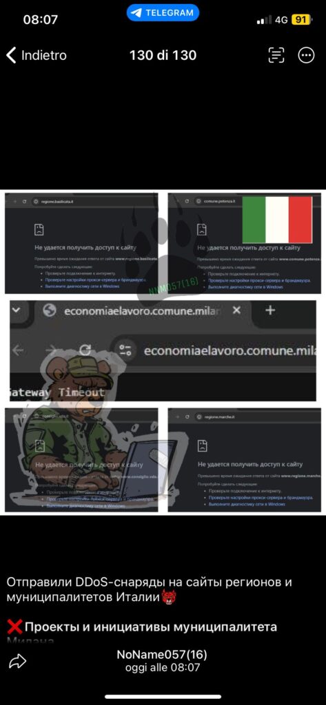 Decimo giorno di attacchi DDoS contro l’Italia. Prosegue anche oggi la campagna DDoS del gruppo hacker NoName057. Tra i target odierni risultano essere attaccati i siti delle Regioni Abruzzo, Basilicata, Marche e Molise, il sito del Consiglio Regionale della Valle d’Aosta.