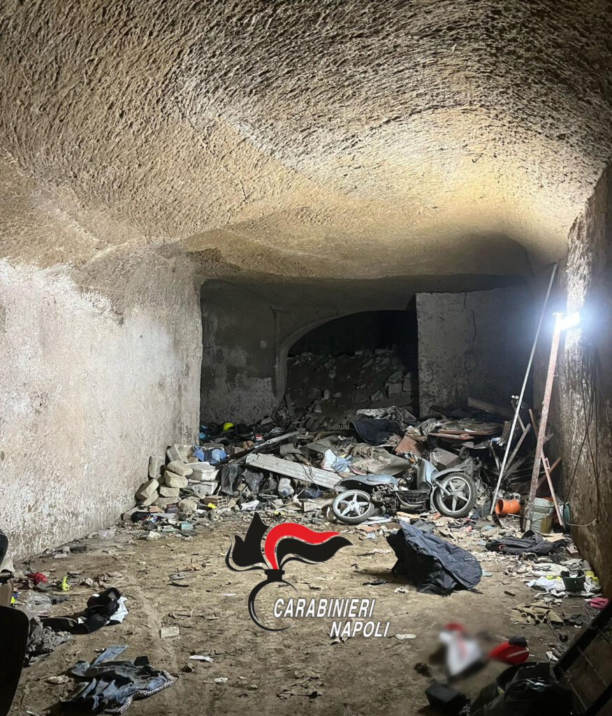 Nel quartiere Stella, nello storico rione Sanità di Napoli, i Carabinieri partenopei hanno rinvenuto una vera e propria grotta, distante qualche decina di metri dalla basilica di San Severo, utilizzata come deposito di carcasse di motoveicoli e decine di pezzi di ricambio, oltre a materiali di risulta e immondizia.