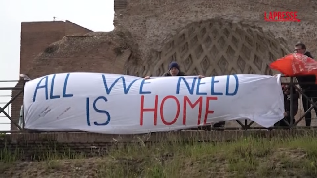 Tensione a Roma tra forze dell’ordine e aderenti al movimento per il diritto all’abitare che hanno occupato un’ala dei Fori Imperiali proprio di fronte al Colosseo. “Siamo qui perché in queste ore è in corso la due giorni promossa dal Comune di Roma denominata: ‘All we need is home’ nel corso della quale si parla di diritto all’abitare con soggetti europei“, spiega Margherita, attivista del movimento. “Si racconta di un’attenzione di questa amministrazione per il diritto all’abitare – prosegue la donna – con risorse serie ma quello che vediamo è che gli sfratti proseguono nonostante la richiesta di Papa Francesco di interromperli. C’è una continua cessione di patrimonio pubblico ai palazzinari. La questione giovanile è trascurata e quindi ciò che vogliamo dire con questa iniziativa eclatante nel cuore della città è che questa idea di Roma come eventificio, come città che deve attrarre gli investimenti di lusso è incompatibile con la necessità di chi non può permettersi di vivere in questa città. Chiediamo un incontro e l’apertura di un tavolo e non rinunceremo al nostro diritto all’abitare”.