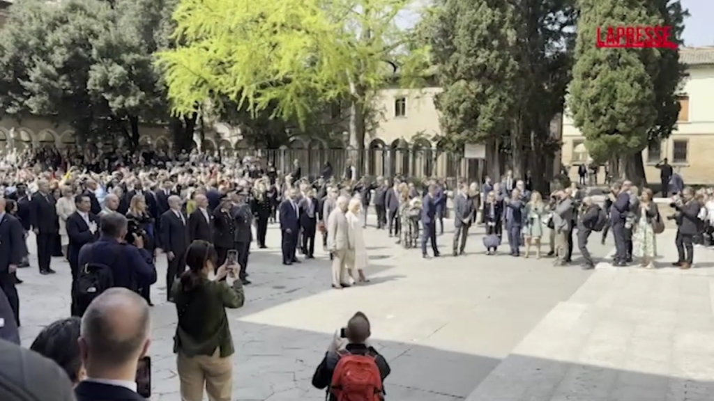 Re Carlo III e la regina Camilla arrivano in piazza San Francesco, a Ravenna, dove visiteranno la tomba di Dante. Ad accoglierli gli applausi dei presenti, che dalle prime ore del mattino li hanno aspettati con bandiere, fiori e gadget.
