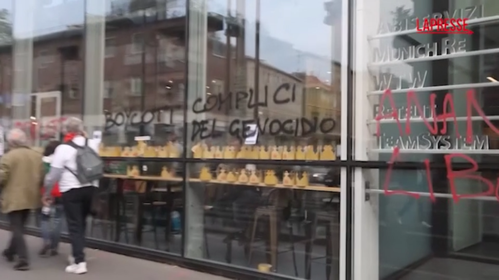 Durante il corteo nazionale per la Palestina in corso a Milano, alcuni manifestanti con il volto coperto da passamontagna neri, che marciavano dietro lo striscione degli antagonisti, hanno danneggiato il bancomat del Banco Desio e le vetrine del Carrefour di via Alserio. Scritte e danni anche ad altre vetrine, tra le quali Starbucks e Burger King. Scritte anche sulle vetrate di Regione Lombardia.