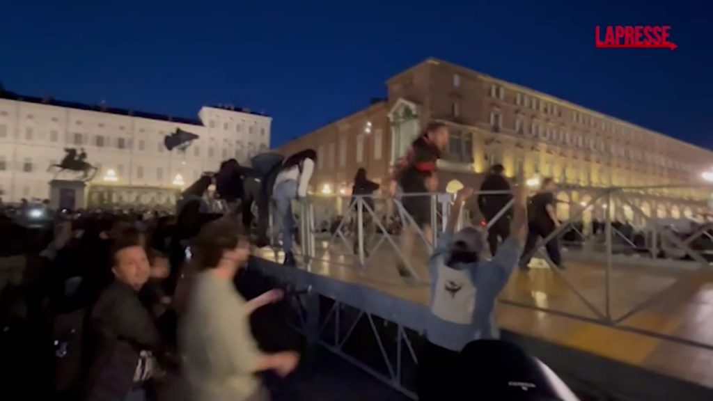 Tensioni tra manifestanti e polizia giovedì sera a Torino, alla vigilia della Festa della Liberazione. Un gruppo di antagonisti ha cercato di salire sul palco, in piazza Castello, dove si stava concludendo l’intervento delle autorità per la commemorazione del 25 aprile al termine del consueto corteo.