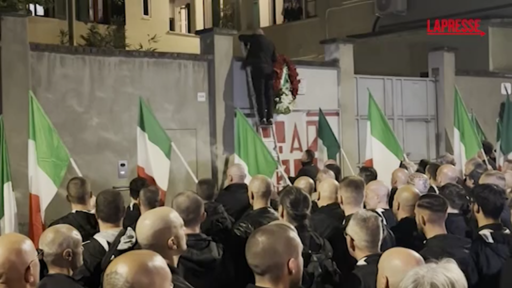 Nel silenzio del rito del ‘Presente’ per Sergio Ramelli davanti alla targa di via Paladini a Milano dove il 19enne missino, morto 50 anni fa, è stato aggredito dai militanti di Avanguardia Operaia, è risuonata da una finestra “Bella Ciao”. Immediata la reazione dei manifestanti di estrema destra che hanno iniziato a urlare insulti ai contestatori, prima di lanciare un petardo nel cortile dell’abitazione da cui proveniva la musica. Dopo i saluti romani e la chiamata del presente per Ramelli il corteo si è sciolto dopo qualche momento di agitazione.