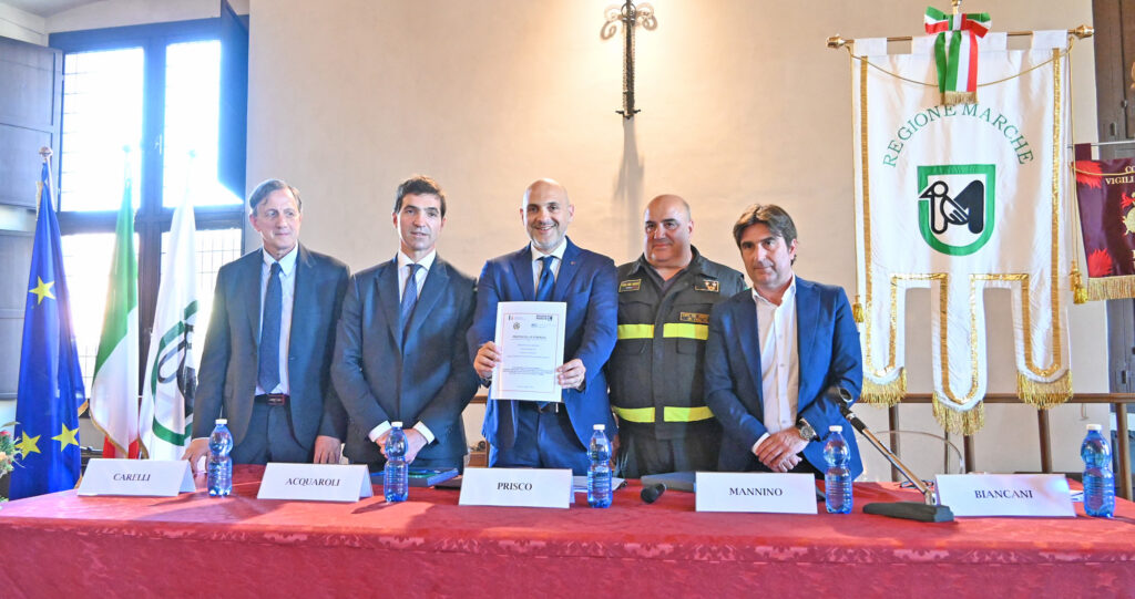 L’accordo, sottoscritto da Ministero dell’Interno, Regione Marche, Comune di Pesaro e AST di Pesaro-Urbino, rappresenta un passo decisivo per superare le criticità dell’attuale caserma situata lungo la Strada Statale 16. Presenti il sottosegretario al Ministero dell’Interno Emanuele Prisco, il presidente della Regione Francesco Acquaroli, il capo del Corpo Nazionale dei Vigili del Fuoco Eros Mannino, il sindaco Andrea Biancani e il direttore dell’AST Alberto Carelli. Tra i partecipanti gli assessori regionali Francesco Baldelli e Stefano Aguzzi.