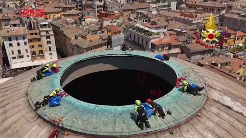 Il comando di Roma dei vigili del fuoco, come da tradizione ultradecennale, ha partecipato alla Messa di Pentecoste all’interno della Basilica di Santa Maria ad Martyres al Pantheon. La celebrazione è culminata con la “pioggia delle rose” dall’Oculos, l’occhio della cupola, a simboleggiare la discesa dello Spirito Santo sulla Madonna e sugli Apostoli. Alla suggestiva cerimonia hanno partecipato migliaia di fedeli e turisti, che hanno ammirato il lancio dei pelati da parte del team VF Speleo Alpino Fluviale.