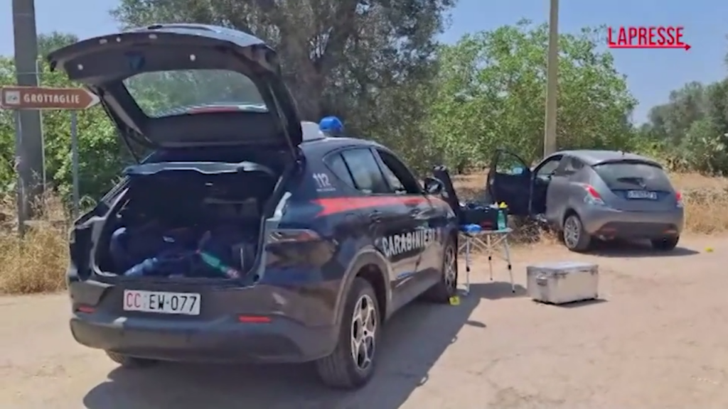 Le immagini del luogo dove questa mattina, un carabiniere è stato ucciso in uno scontro a fuoco a Francavilla Fontana, nel Brindisino, durante un inseguimento. Carlo Legrottaglie, brigadiere di 59 anni, era intervenuto insieme a un collega di pattuglia per scongiurare una rapina in un distributore di carburante. Ne è nato un inseguimento. L’auto dei malviventi è uscita di strada. Uno dei due uomini all’interno del veicolo si è dato alla fuga, mentre l’altro è uscito sparando contro il brigadiere. Intercettata l’auto dei rapinatori, una Lancia Y di colore scuro. Presi i banditi, uno è morto.