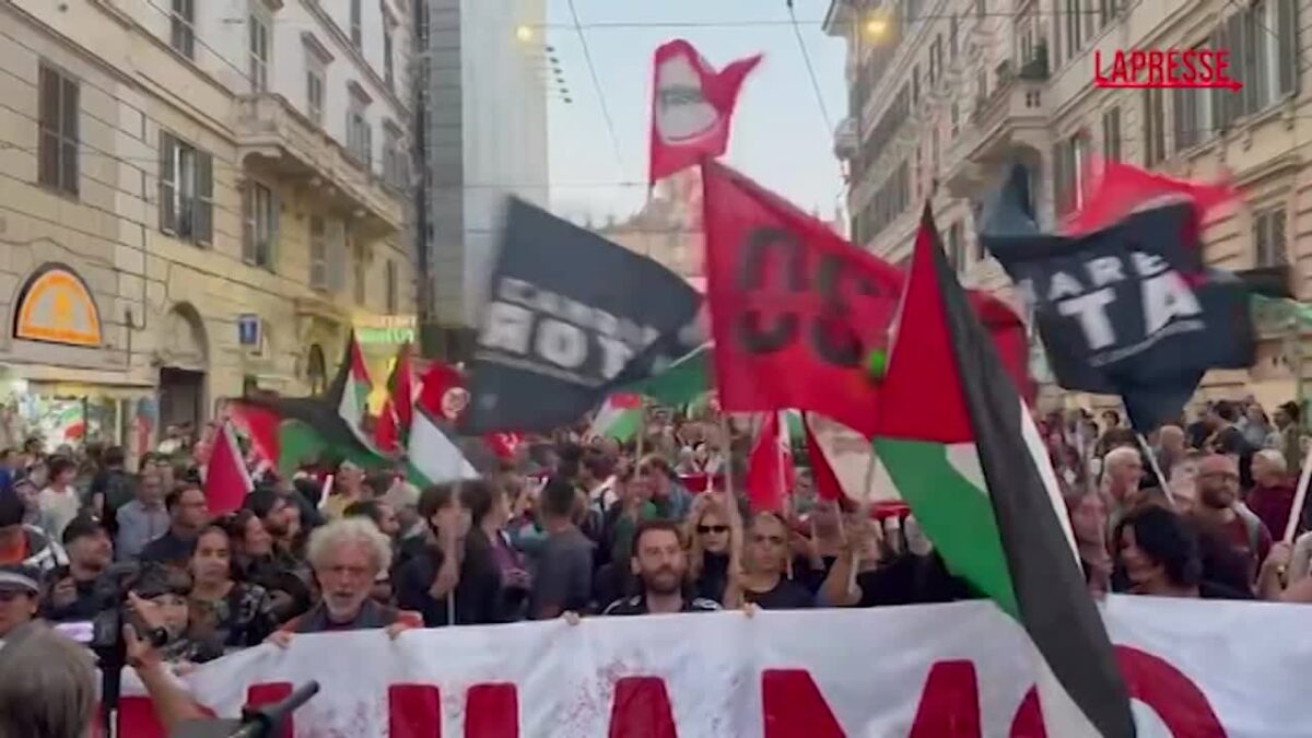 È partito a Roma il corteo pro-Pal da piazzale Flaminio in direzione Farnesina. I manifestanti, alcune centinaia, proseguono lo stato di agitazione permanente a supporto della Global Sumud Flotilla, con cui è previsto un collegamento telefonico. Alla testa del corteo un camion con lo striscione “Gaza stiamo arrivando”, del Global Movement to Gaza, seguito da quello già esposto lunedì scorso, in occasione dello sciopero generale: “Blocchiamo tutto”.