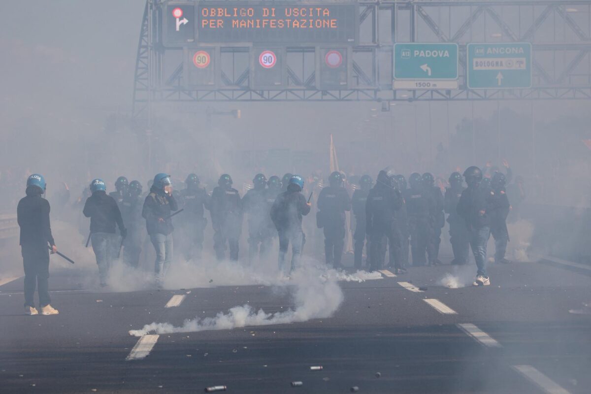 A Bologna, alle 14.30 i manifestanti hanno raggiunto i reparti schierati all’altezza dell’uscita 5 della tangenziale. Una parte del corteo, in quel momento ha iniziato a tornare indietro in via Zanardi, diretto al centro della città.