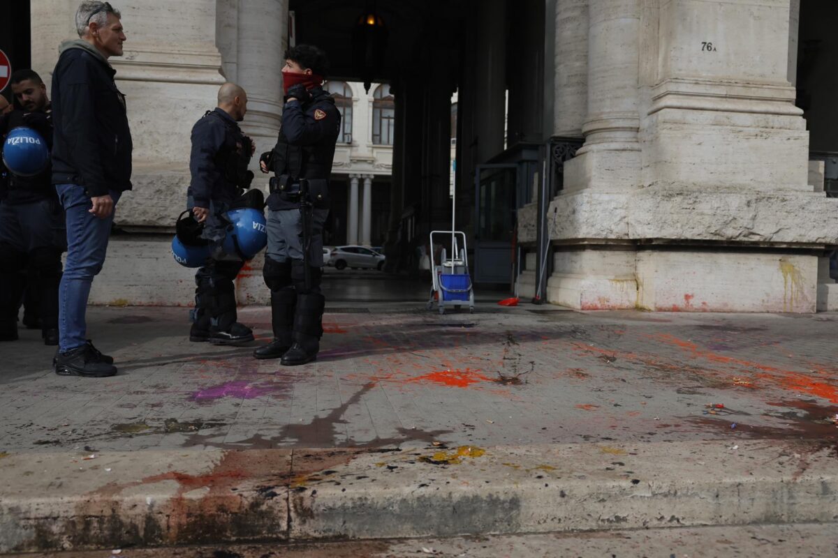 Un gruppo di studenti legato ai collettivi autonomi dei licei si è presentato davanti al ministero dell’Istruzione e del Merito a Roma lanciando secchi di vernice sulla facciata e colpendo il reparto di polizia che presidiava l’ingresso.