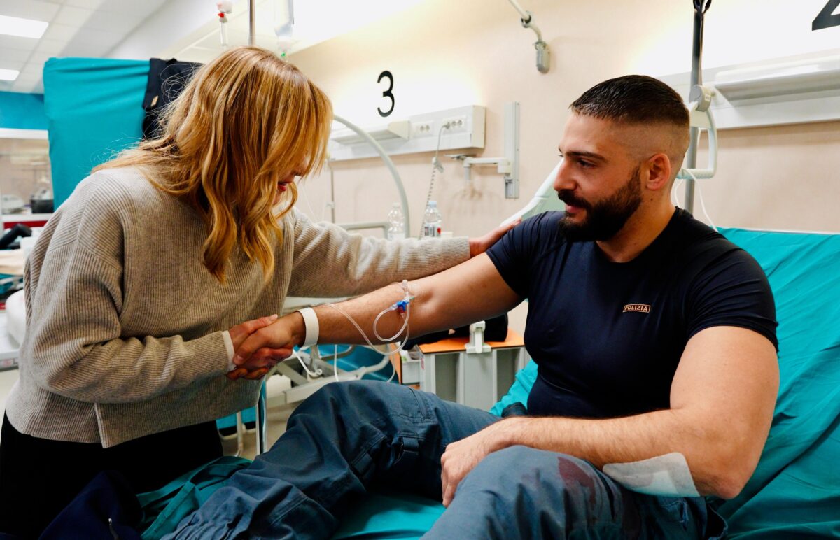 La presidente del Consigli Giorgia Meloni è arrivata all’ospedale Molinette di Torino dove sono ricoverati alcuni dei rappresentanti delle forze dell’ordine feriti negli scontri di ieri. Tra loro Alessandro Calista, 29 anni, vittima del pestaggio da parte di un gruppo di manifestanti. Nelle immagini diffuse dell’incontro, la premier saluta gli agenti ricoverati dicendo a due di loro “Grazie per il vostro lavoro”. Mentre stringe la mano a un ferito, l’agente spiega le difficoltà affrontate, sottolineando che “Sono molto organizzati”. Poi ringrazia la presidente del Consiglio per la visita. “Stai scherzando? Che potevo mancare?“, replica la premier prima di dire, stringendo le mani del poliziotto: “Dai eh”, per poi congedarsi. Nel video uno dei medici presenti durante la visita della premier riferisce che i feriti hanno “diverse escoriazioni senza fratture e resteranno in osservazione 24 ore”