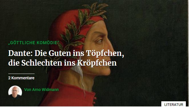 Dante Alighieri non ha inventato nulla, né il “volgare” cioè l’italiano, né il viaggio nell’al di là descritto nella Divina Commedia, per cui non si capisce che cosa debbano festeggiare gli italiani. A sostenerlo è un editoriale pubblicato dal giornale tedesco Frankfurter Rundschau a firma di Arno Widmann, giornalista e traduttore. “L’Italia lo loda come uno di coloro che hanno portato la lingua nazionale ai vertici della grande letteratura. In un certo senso, ha creato il linguaggio per il suo lavoro”, si legge nel testo in cui analizza la situazione linguistica nell’Italia di Dante, rilevando che “la prima poesia d’arte in lingua madre in Italia è stata scritta in provenzale”, cioè il “Livre du Trésor” di Brunetto Latini. Nulla di nuovo, secondo l’autore tedesco, neanche per il tema della Commedia. “Nella tradizione musulmana c’è il racconto del viaggio di Maometto in Paradiso”, scrive Widmann che cita uno studio dell’arabista spagnolo Miguel Asin Palacios secondo cui il poeta fiorentino avrebbe conosciuto e usato il testo.